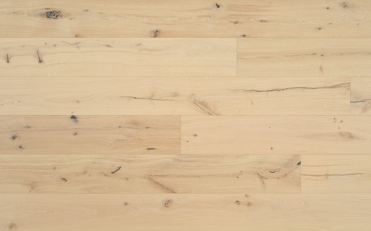 Een houten vloer hoeft niet perfect te zijn, integendeel. De donker opgevulde scheuren en knopen in het oppervlak van Chalet benadrukken het unieke, grillige patroon. Die onvolkomenheden gecreëerd door de natuur geven dit parket net iets meer karakter.
